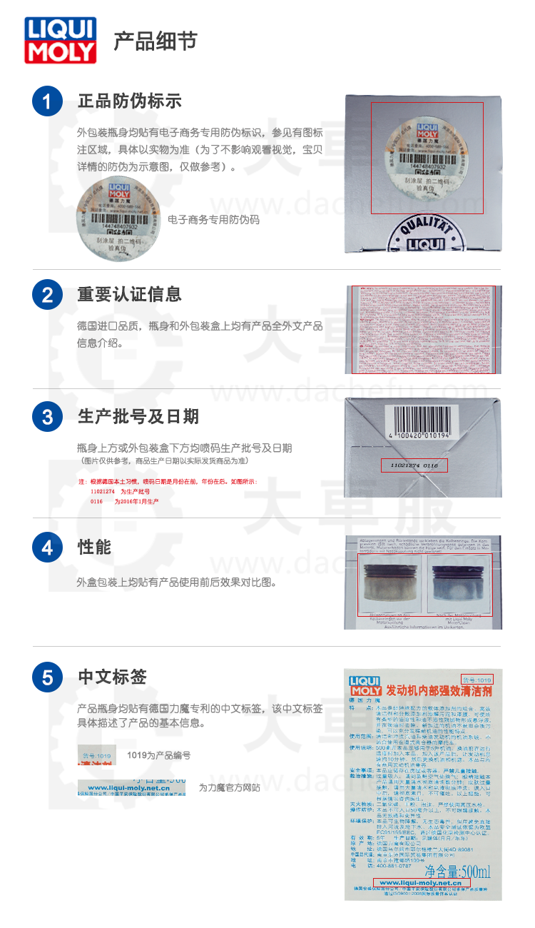德国力魔 LIQUI MOLY 清洗剂配方,清洗剂可快速清除发动机中有害的油泥、油漆、胶质物等,同时清洁发动机气门挺杆和摇臂,恢复活塞环的弹性,内含的分散剂使旧机油排除更加干净,减少对于新机油的污染。为使您的爱车在养护后,新润滑油可工作在干净的环境中,发挥润滑油良好的性能,德国力魔 LIQUI MOLY 建议您每次都可进行清洗操作,效果出色,安全可靠!