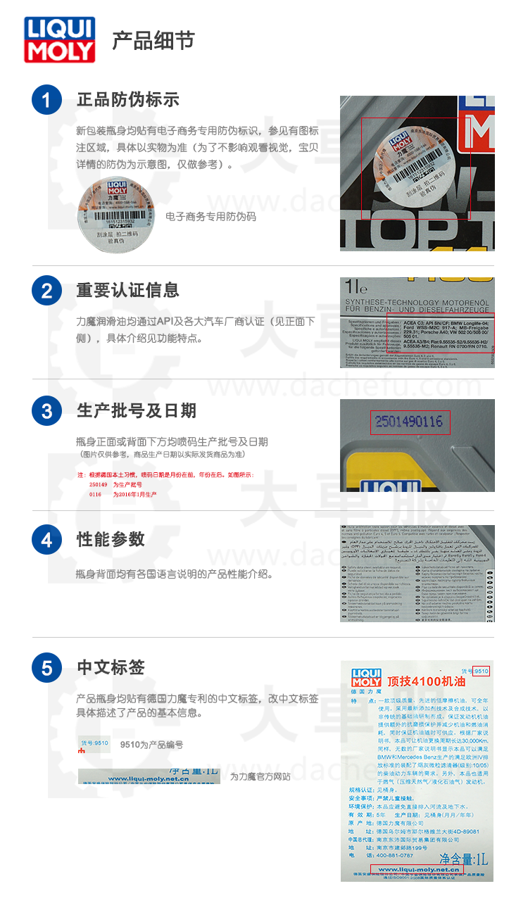 力魔 LIQUI MOLY 顶技4100HC全合成机油 5W-40 SN/CF (德国)